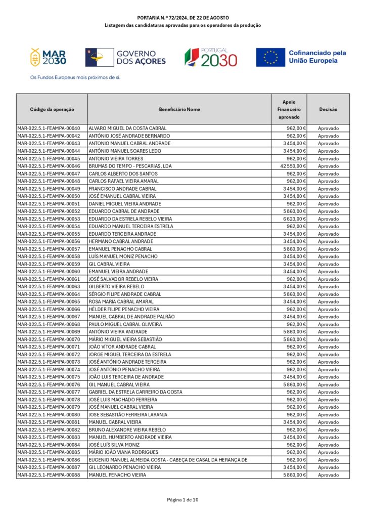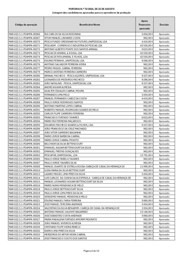 Aviso Lista de beneficiários da PORTARIA N.º 72/20224 – REGIME DE COMPENSAÇÃO DOS CUSTOS ADICIONAIS DE PRODUÇÃO RESULTANTES DA AGRESSÃO MILITAR DA RÚSSIA CONTRA A UCRÂNIA Abril 24, 2025 Abril 24, 2025
